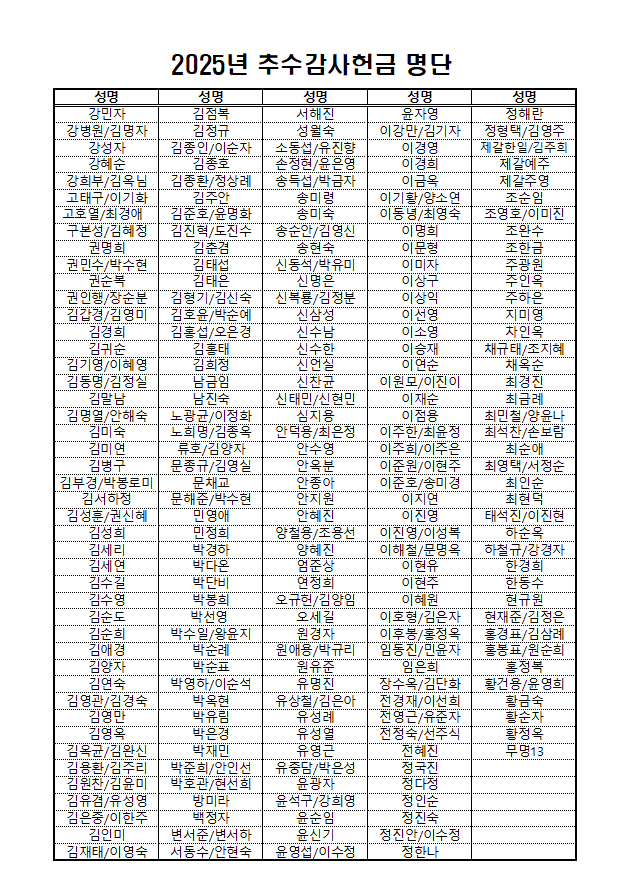 2025년 추수감사헌금명단